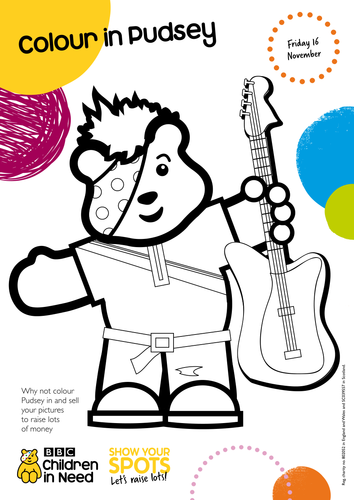 Apr 1 2017 explore rie200578s board pudsey colouring sheets followed by 980 people on pinterest. Or right click the larger image to save a copy onto your computer. Pudsey bear coloring page you can download the pudsey bear coloring page and template here simply click on the bear picture below and it will open in a new window larger and ready to print. These themed colouring sheets include images of the charitys mascot pudsey bear. See more ideas about pudsey children in need preschool activities.